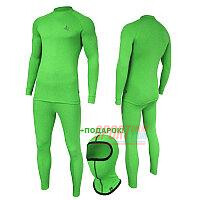 Данная модель термобелья состоит из: термоджемпера, термолосин и балаклавы салатового цвета.