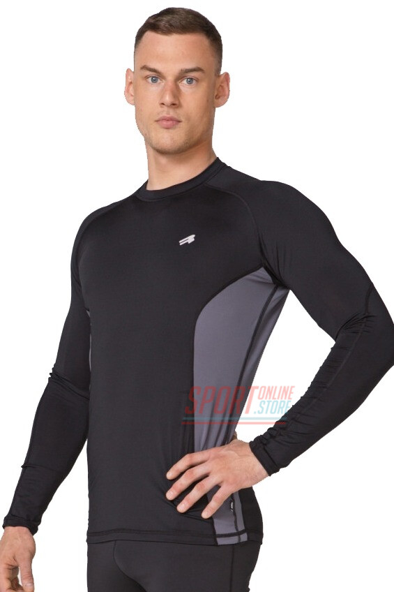 Лонгслив (Рашгард) мужской спортивный легкий Rough Radical Fury Duo LS, чёрный с серой полоской