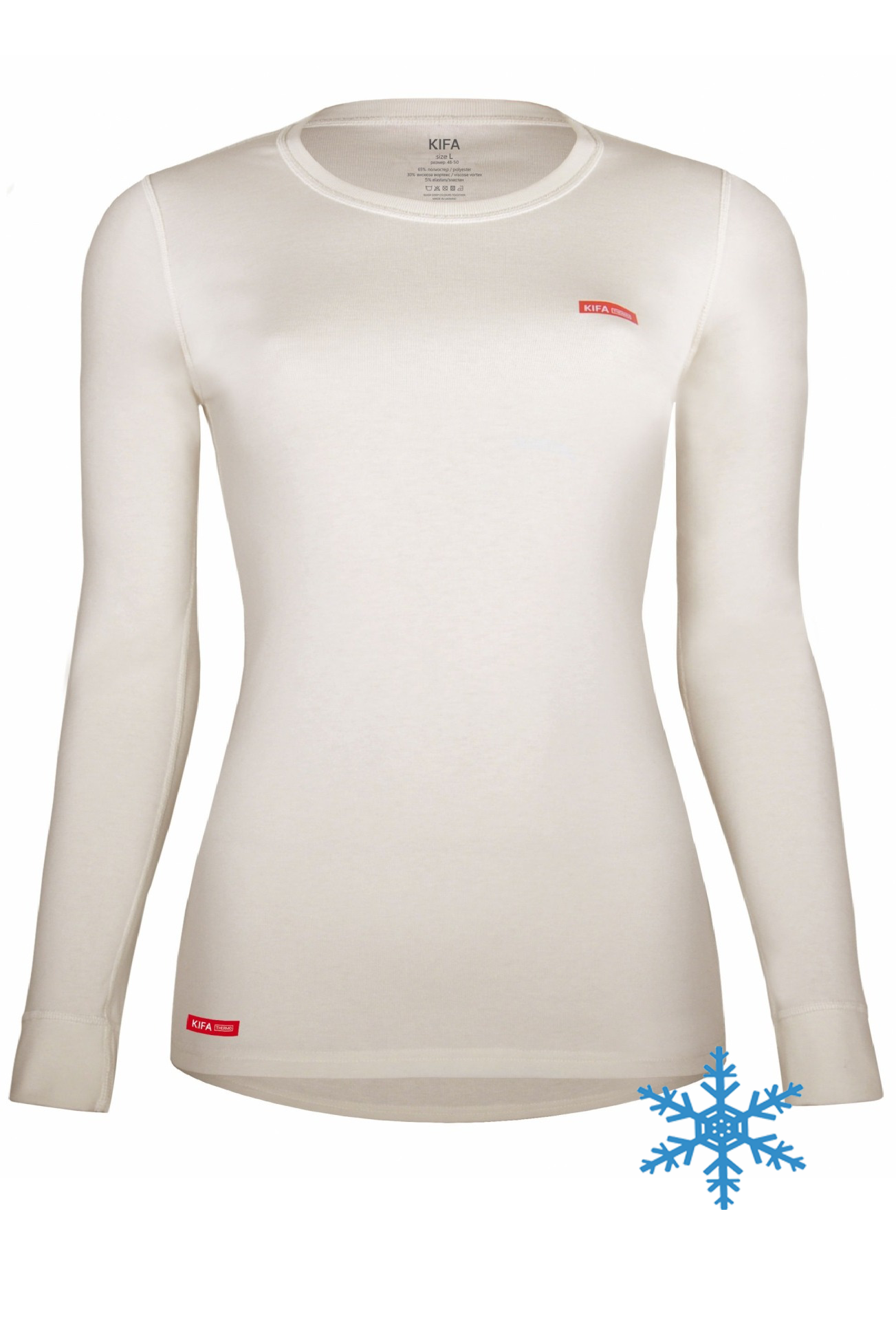 Удобная и универсальная женская термофутболка от николаевской фабрики Кифа, серии VORTEX Active Comfort предназначена для использования в холодную пору года и морозы. Данная модель имеет эргономичный крой, плоские аккуратные швы и нежный микроначес изнутри. Смесь полиэстра и вискозы VORTEX создают отличные термосберегающие качества термофутболки, ее можно носить как в повседневной жизни, на прогулки так и для активного досуга. Она хорошо облегает фигуру, потому Вы можете носить любую одежду поверх, приятный молочный цвет создаст ощущения уюта. Состав: 65% полиэстер 30% вискоза VORTEX 5% эластан Назначение термобелья KIFA серии Вискоза VORTEX Active Comfort: Универсальное - для повседневного использования, активного отдыха и спорта, охоты и рыбалки. Особенности термобелья Кифа серии Вискоза VORTEX Active Comfort: трехмерный эргономичный крой для свободы движений + хорошее облегание; плоские эластичные швы; специальная обработка против образования запаха; капиллярный микроканал для выхода пота с поверхности тела наружу; двухслойная конструкция трикотажной ткани из микроволокна; эффективная защита от потери тепла; контроль перегрева тела во время нагрузок; не мнётся после стирки.