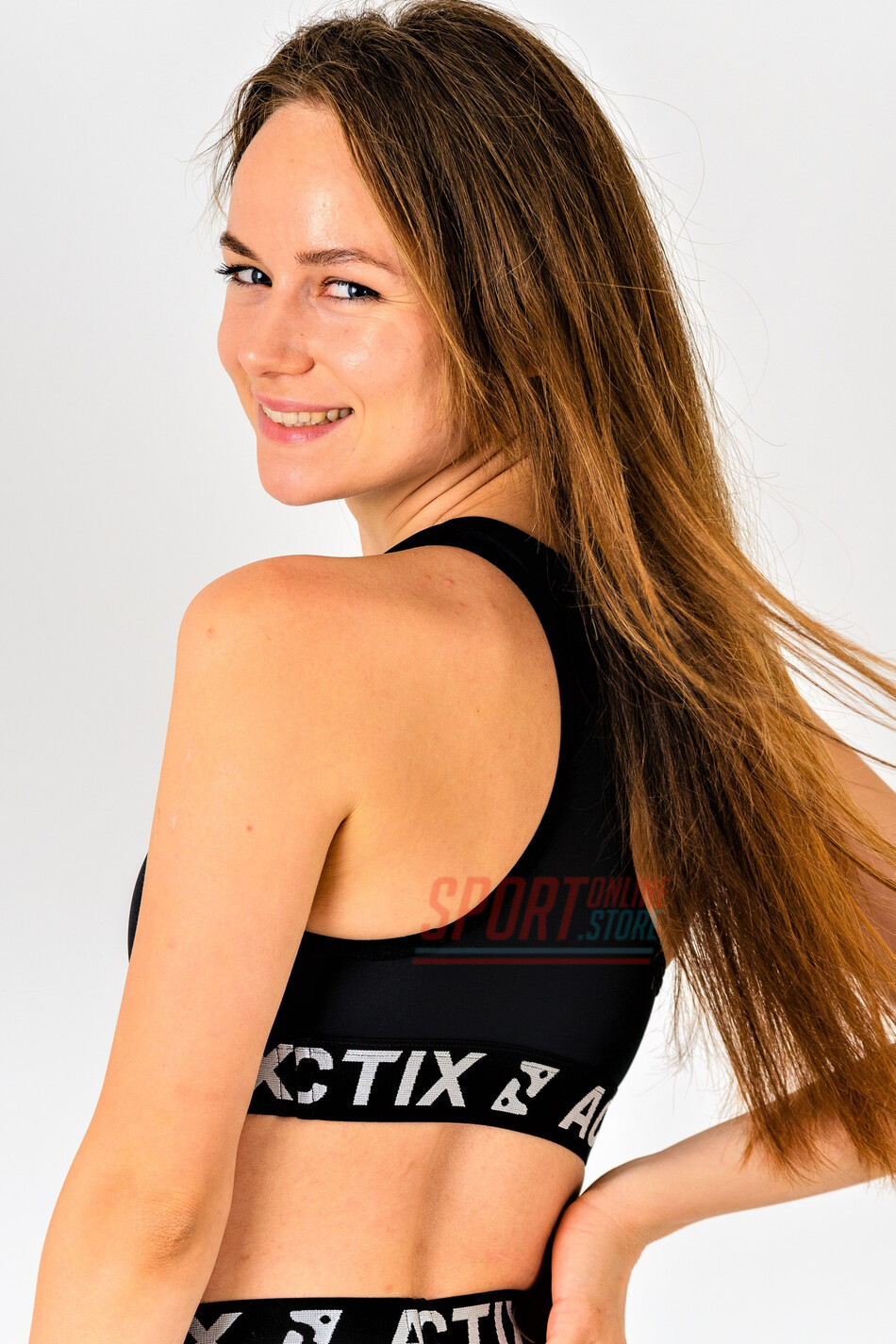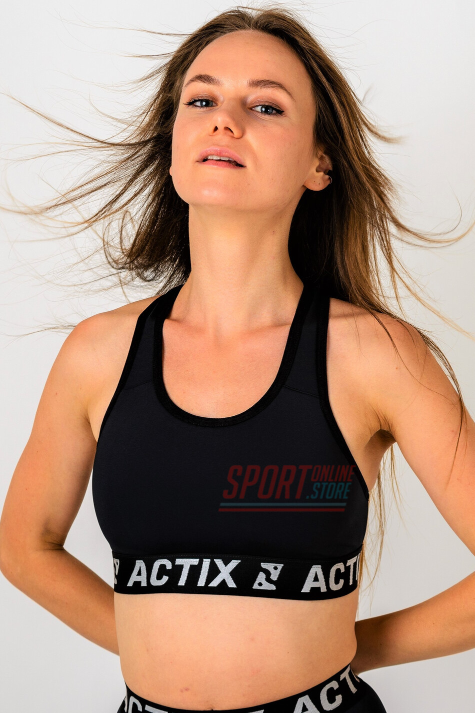 Спортивный топ (bra) с поддержкой и открытой Х спиной без чашечек Actix Athletic Bra Black из упругой и эластичной ткани, с лёгким компрессионным эффектом и быстрым высыханием.