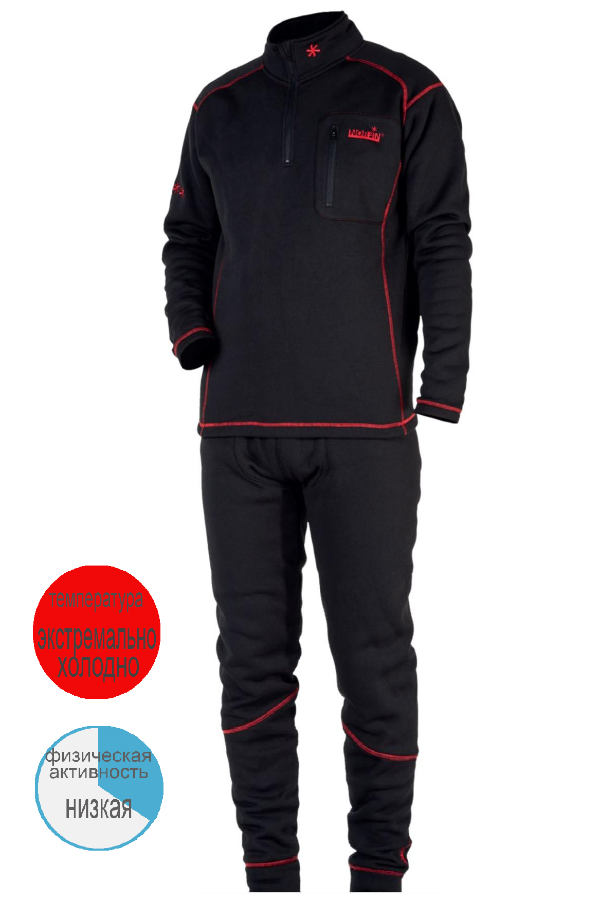 Універсальна чоловіча термобілизна Norfin Nord Comfort стане справжньою знахідкою для любителів зимової риболовлі, полювання, або тих, хто проводить багато часу на свіжому повітрі в холодну пору року. Щільна, але дихаюча термобілизна добре пропускає повітря і відводить вологу, підтримуючи комфортну температуру тіла і захищає Вас від застуди. Нагрудна кишеня на блискавці дозволить мати при собі необхідні речі або документи. Плоскі шви і анатомічний крій забезпечують облягання по фігурі і комфорт під час носіння. Призначення: Для екстремально холодної погоди Активність – низька Особливості: Плоскі шви Високий комір Передня застібка-блискавка Нагрудна кишеня на блискавці Еластичний пояс Мульти-зональний анатомічний крій Еластичні манжети Виріб гіпоалергенний Підтримує комфортну температуру Склад: Поліестер 100%