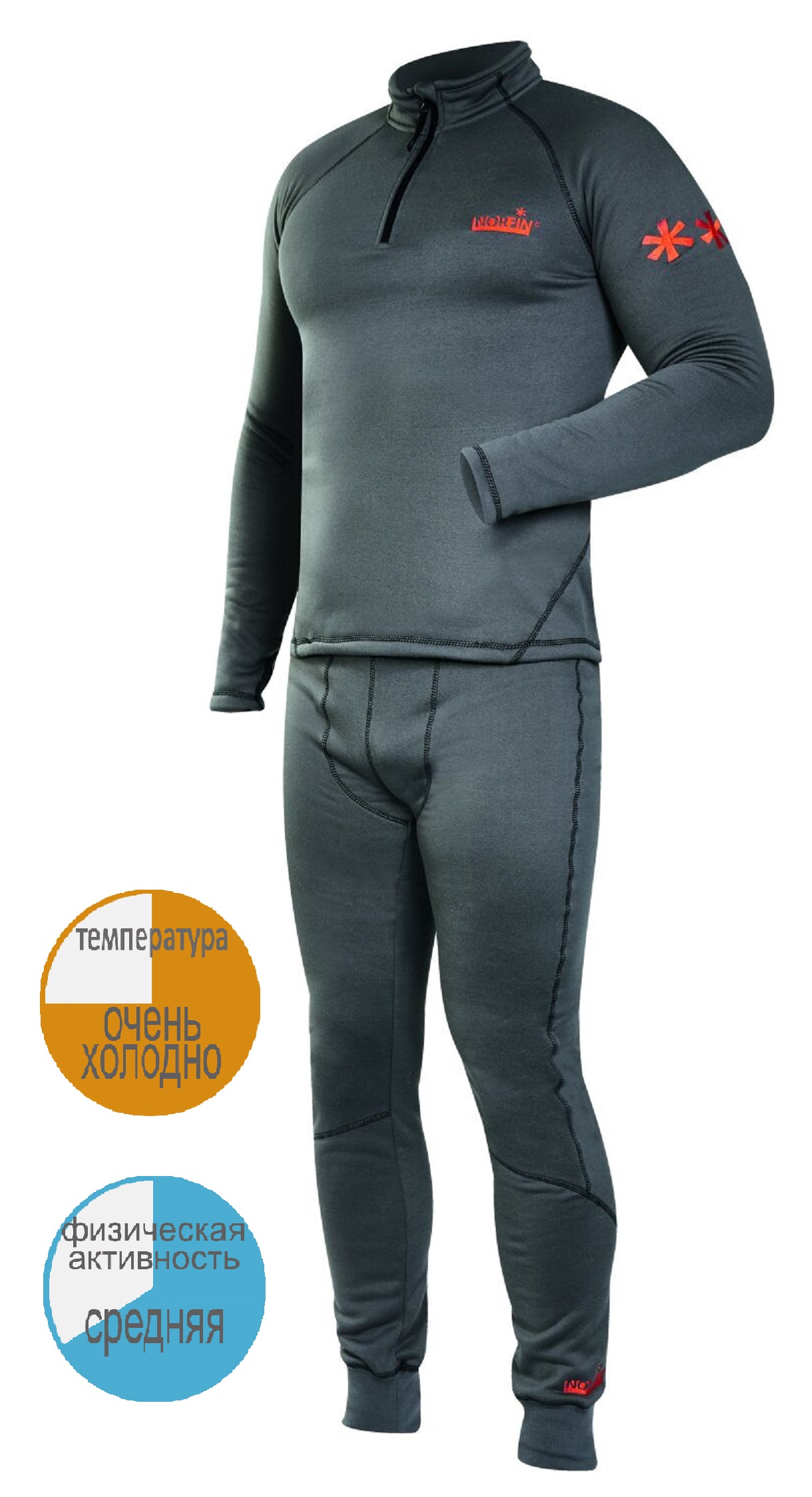 Популярна і улюблена українськими чоловікам серія чоловічої термобілизни Winter Line від Norfin широко застосовується як базової шар для середнього і низького фізичного навантаження і утеплювальний шар для високого. Матеріал виробу володіє м'якістю, легкістю і еластичністю, не стискує руху. Зручні манжети на штанинах, на рукавах є виріз під великий палець, що полегшує надягання термобілизни і створює затишок під час носіння. Термоджемпер оснащений високою горловиною і застібкою-блискавкою, це дозволить надійно захистити грудний відділ і шию від холодів і вітру. Призначення: Для дуже холодної погоди Активність – середня Переваги термобілизни Норфин Вінтер Грей Лайн Чоловічий комплект створений із спеціального матеріалу NORFLEECE DRY з високими дихаючими властивостями і здатністю водовідведення. У такому костюмі неможливо спітніти або взмокнути. Він забезпечує хороший комфорт і свободу рухів. Особливості: Висока дихаюча здатність Хороші властивості паровідведення Екологічна тканина Анатомічний крій Плоскі шви Високий комір Еластичний пояс Щільні манжети на рукавах та штанах Дуже приємний і м'який матеріал Надійна застібка-блискавка Еластичний пояс Еластичні манжети на штанях Проріз на рукаві під великий палець Склад: Поліестер 100%